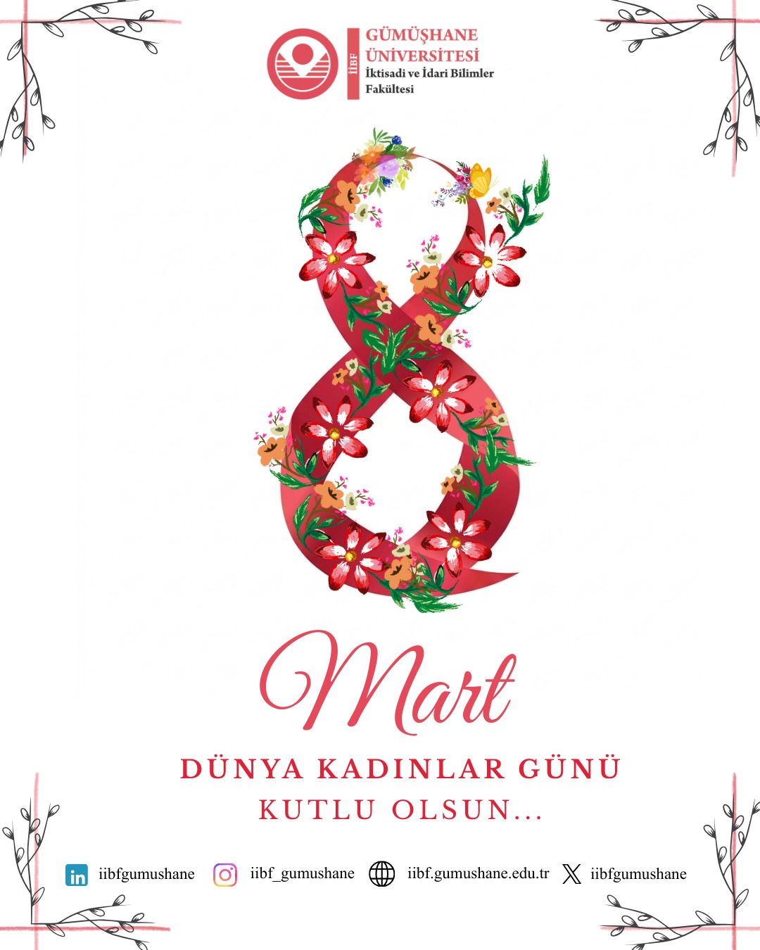 Bu anlamlı gün vesilesiyle başta akademisyenlerimiz, idari personelimiz ve öğrencilerimiz olmak üzere tüm kadınların 8 Mart Dünya Kadınlar Günü’nü kutluyoruz.