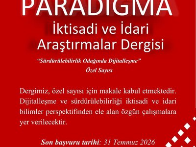 Gümüşhane Üniversitesi İktisadi ve İdari Bilimler Fakültesi bünyesinde yayımlanan Paradigma: İktisadi ve İdari Araştırmalar Dergisi, “Sürdürülebilirlik Odağında Dijitalleşme” temalı özel sayısı için makale kabulüne başlamıştır.