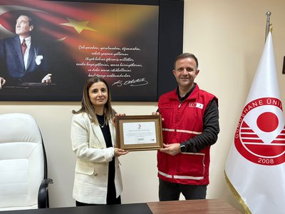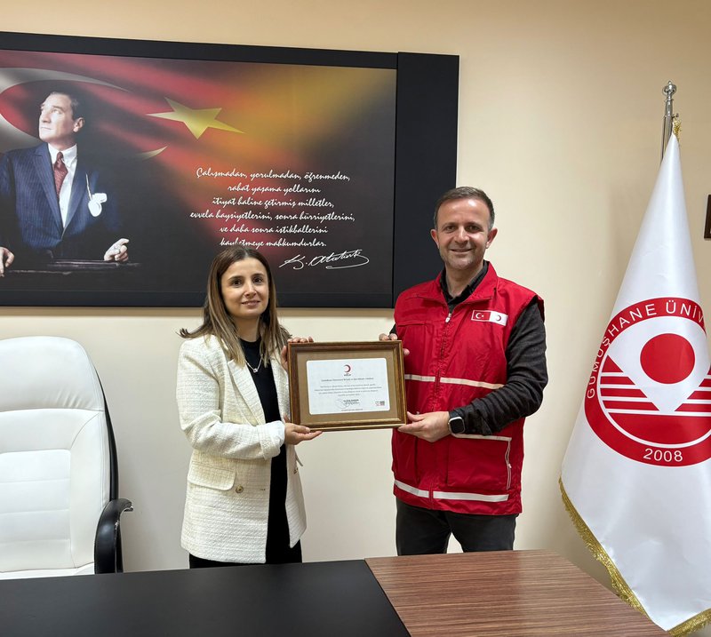 Gümüşhane Kızılay Kan Bağışı Merkezi, fakültemizde yürütülen gönüllü kan bağışı çalışmalarına sağlanan destek ve gösterilen duyarlılık nedeniyle Kan Bağışı Kazanım Uzmanı Adem BAL tarafından Fakültemize teşekkür belgesi takdim etti.